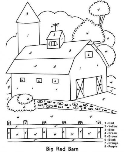 Have her add color to the peaceful picture of the horse outside of the barn.